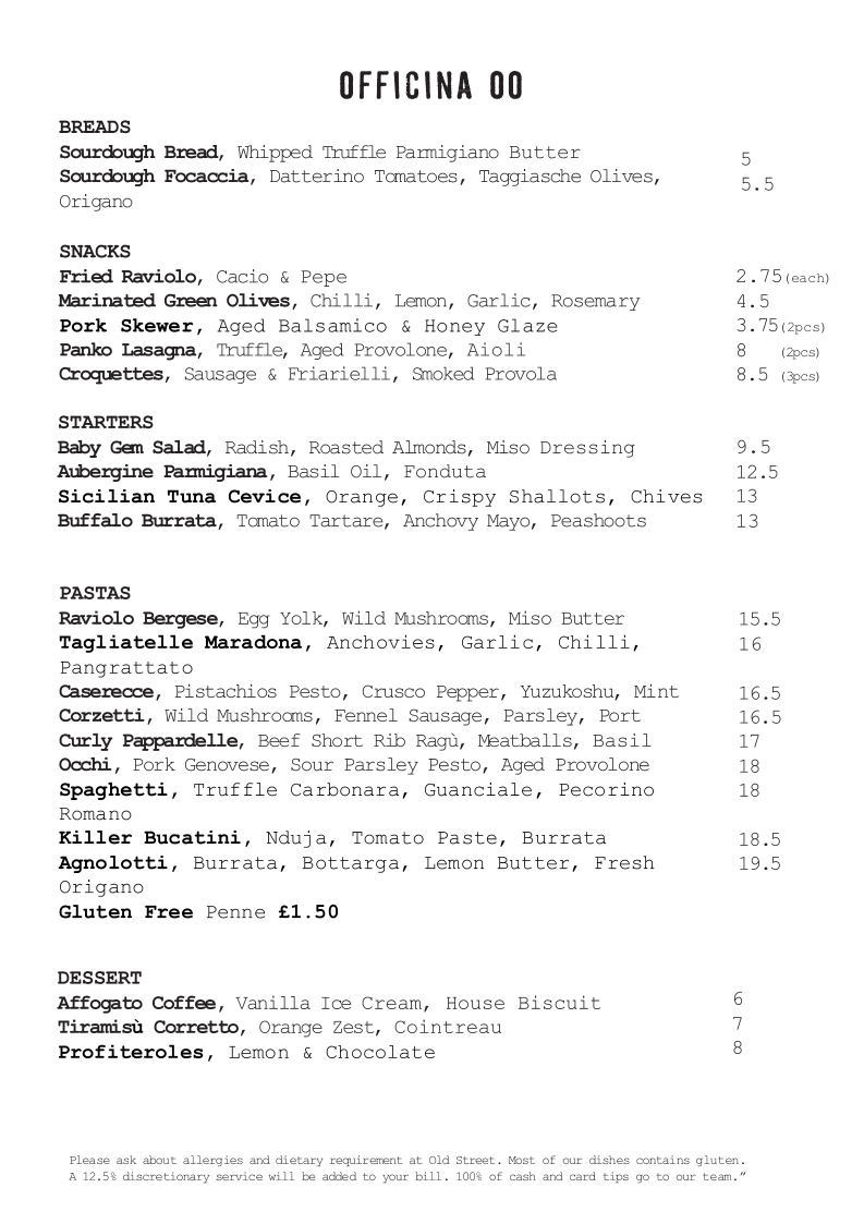 Located in the heart of London's vibrant Fitzrovia, Officina 00 promises an exquisite dining experience that resonates with Italian culinary traditions. With its address at 67 Whitfield St, this restaurant delights patrons with a menu that reflects both passion and precision in every dish. The ambiance is sleek, merging modern design with a welcoming atmosphere, making it the ideal spot for a romantic dinner or a lively gathering with friends.